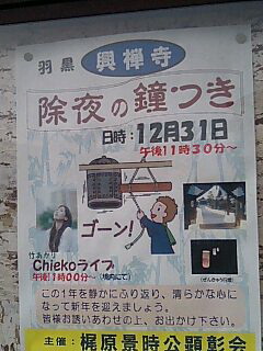 (梶原景時公顕彰会主催除夜の鐘つきポスター。羽黒・興禅寺)