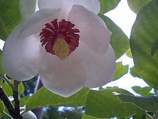 葉っぱは 白モクレンとホウノキ(朴の木)の中間くらい。