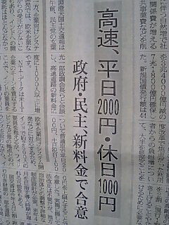 「普通車で平日2000円、土日祝日1000円を上限とする」