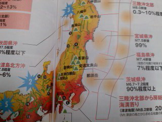今回は14:46の三陸沖M9.0から30分間に、宮城県沖、福島沖、房総沖の3震源域でも連鎖してM7~8の巨大地震が4個も発生し、