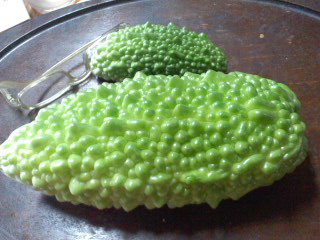 ・・が、今年はまだ小さいのが2ヶ(5~6cm)ぶら下がっているのみ。 気温のためか、植えた時期が遅かったのでしょうか。